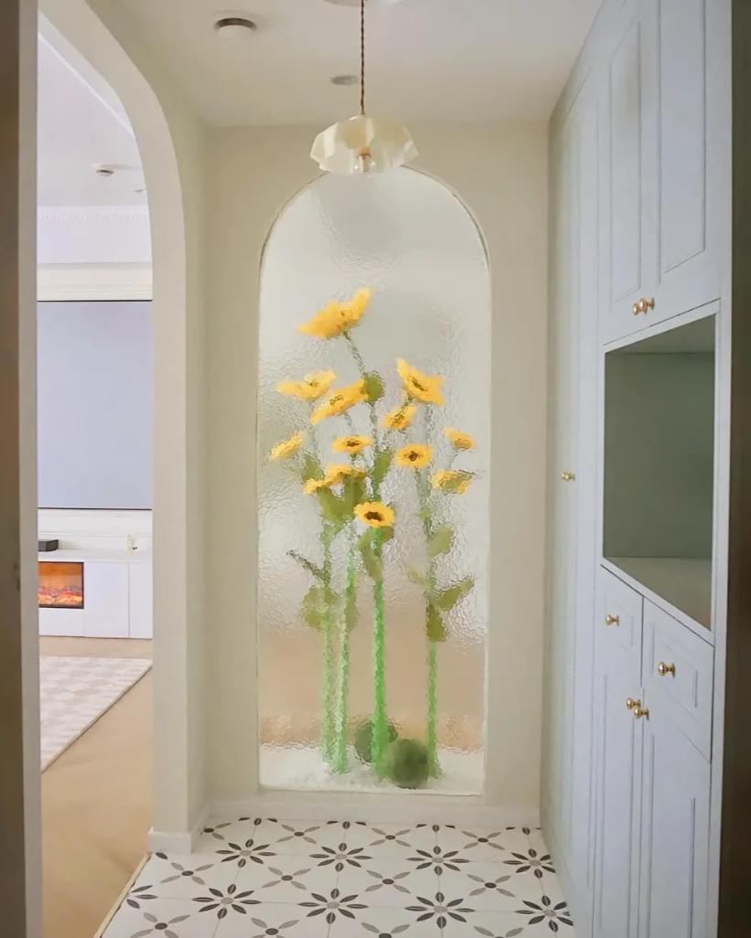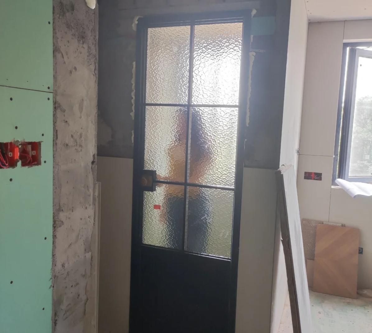我发现自己就是一个大冤种,本以为水波纹玻璃搭配上黑色门框,会很有中古风调调,可安装上去之后,才发现会透人。