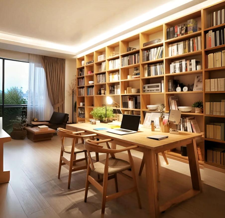 除了可以增加很多收纳空间之外,装饰性效果也不错。尤其是摆满书籍后,整个空间都透着一抹浓浓的书香氛围感。
