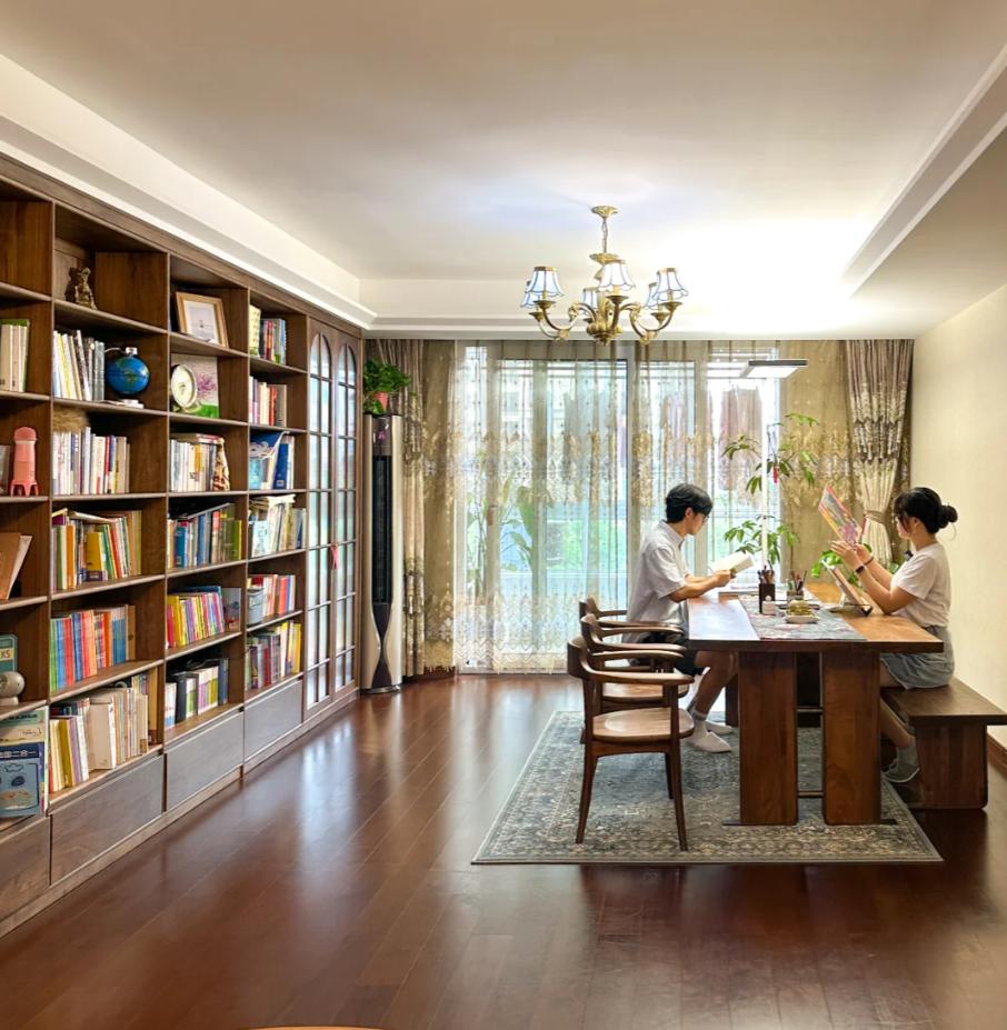 随着“去客厅化设计”的流行,客厅满墙书架设计,也受到了很多人的青睐。