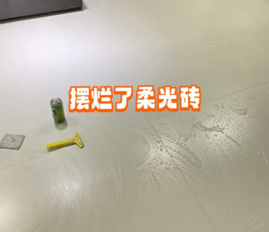 跟风铺了柔光砖,但我现在已经决定摆烂了。只要地面有一点点脏东西就会特别明显,并且拖地时还会留下水渍,得跪在地上慢慢擦,太折磨人了。