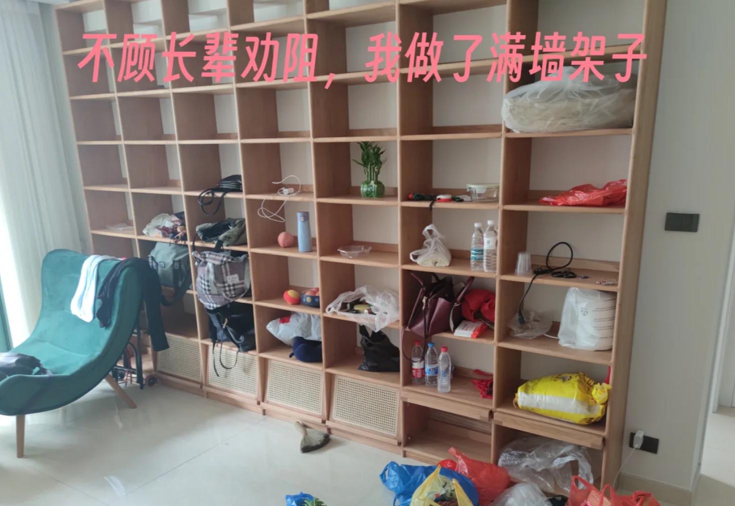 我承认我后悔了,也承认想象与现实差距很大。当初不听劝做的满墙书架,现在已沦为了杂物堆积区,好像没有什么东西是不能上架子的。